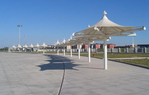 張拉膜結構長廊遮陽棚產品熱銷城市:山東,河北,安徽,天津,甘肅